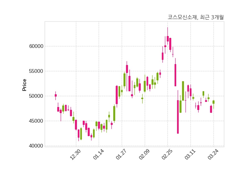 한편, 코스모신소재는 장 마감 이후 해당 기업공시를 발표했으며 오늘 종가가 49,050원, 거래량은 153,517주로, 직전 거래일 대비 2,400원(+5.14%) 상승했다.