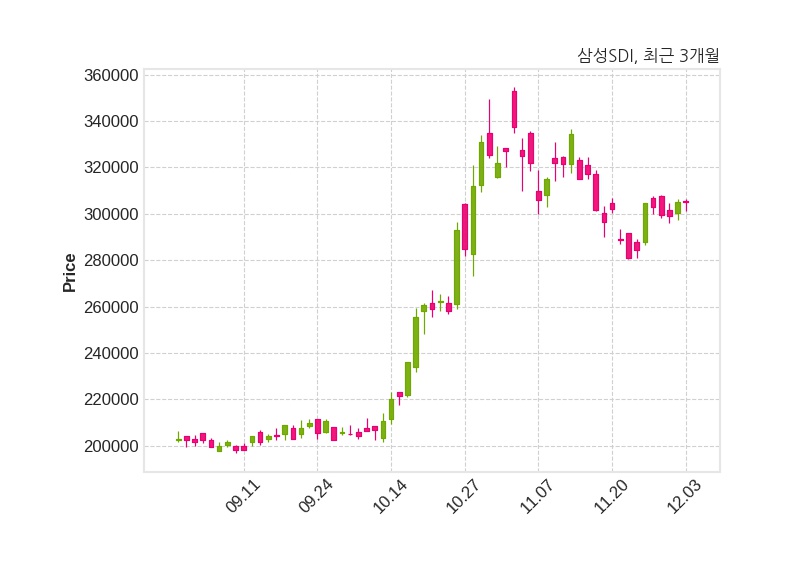 한편, 삼성SDI은 장 마감 이후 해당 기업공시를 발표했으며 오늘 종가가 305,000원, 거래량은 224,504주로, 직전 거래일 대비 변동이없다.