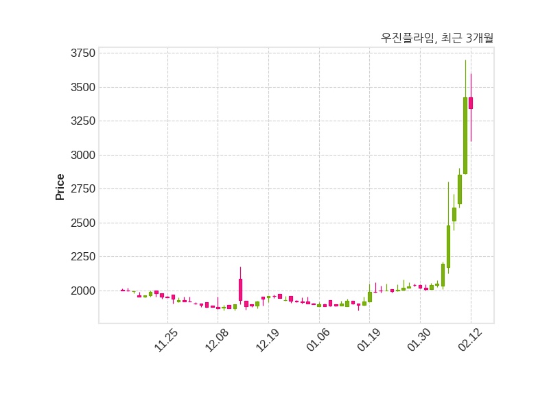 한편, 우진플라임은 장 마감 이후 해당 기업공시를 발표했으며 오늘 종가가 3,340원, 거래량은 686,359주로, 직전 거래일 대비 85원(-2.48%) 하락했다.