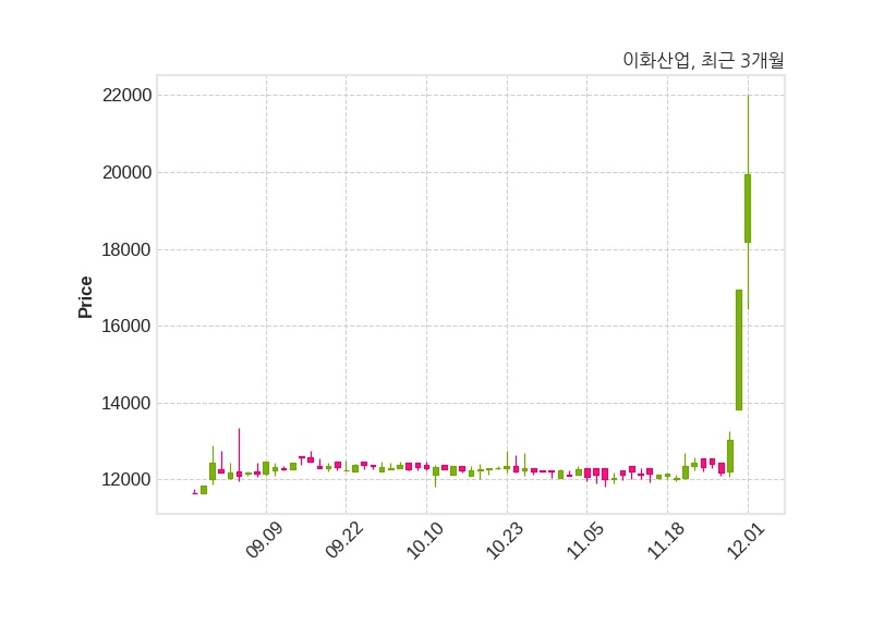한편, 이화산업의 14시 24분 현재주가는 19,930원으로 직전 거래일 대비 2,980원(+17.58%) 상승이며, 거래량은 886,495주이다.