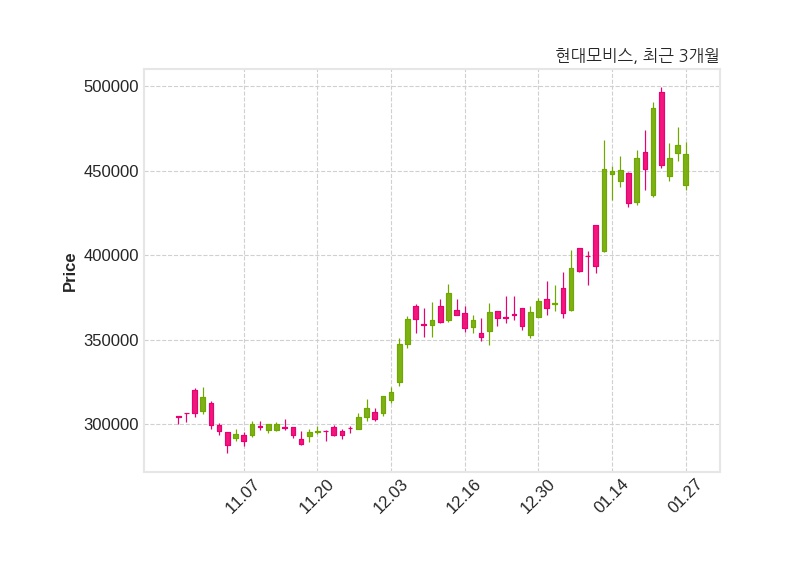 한편, 현대모비스는 장 마감 이후 해당 기업공시를 발표했으며 오늘 종가가 460,000원, 거래량은 527,870주로, 직전 거래일 대비 5,500원(-1.18%) 하락했다.