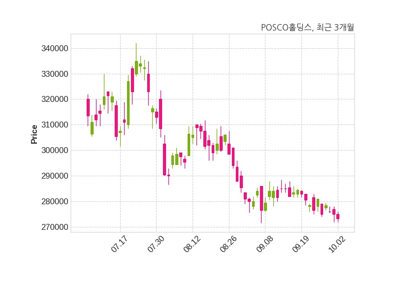 한편, POSCO홀딩스의 10시 12분 현재주가는 273,250원으로 직전 거래일 대비 1,750원(-0.64%) 하락이며, 거래량은 71,482주이다.