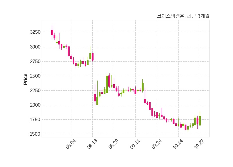 코아스템켐온은 특별관계자 김경숙의 지분율이 13.85%에서 15.98%로 변동했다고 27일 공시했다. 한편, 코아스템켐온은 장 마감 이후 해당 기업공시를 발표했으며 오늘 종가가 1,804원, 거래량은 1,620,682주로, 직전 거래일 대비 124원(+7.38%) 상승했다.
