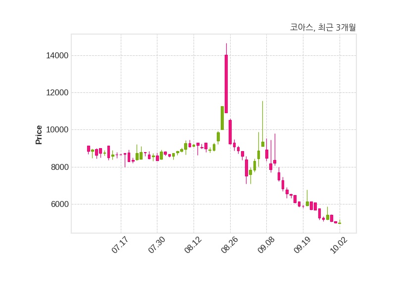 한편, 코아스는 장 마감 이후 해당 기업공시를 발표했으며 오늘 종가가 4,995원, 거래량은 58,361주로, 직전 거래일 대비 15원(+0.3%) 상승했다.