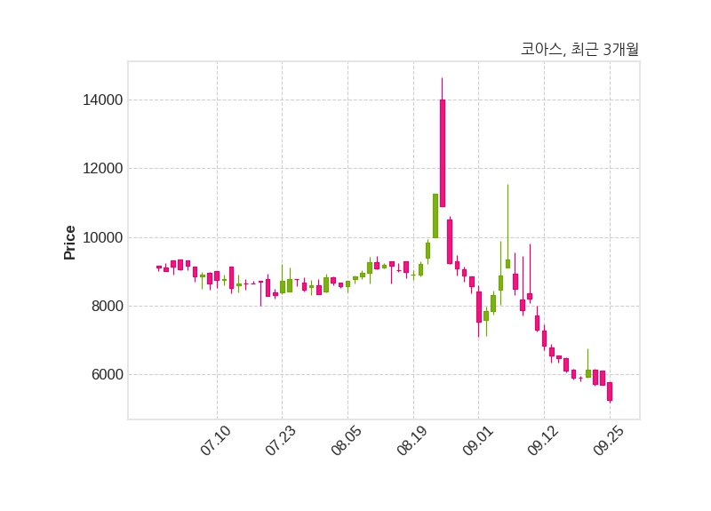 한편, 코아스는 장 마감 이후 해당 기업공시를 발표했으며 오늘 종가가 5,250원, 거래량은 133,257주로, 직전 거래일 대비 440원(-7.73%) 하락했다.