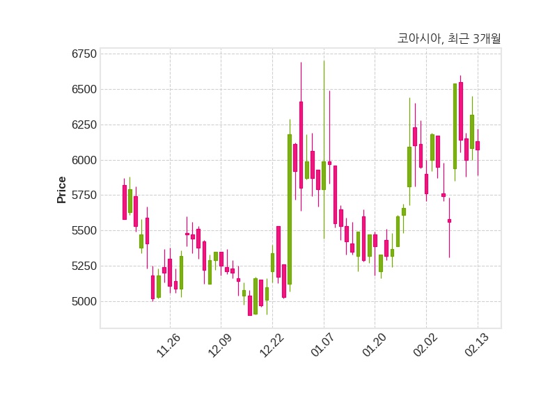 한편, 코아시아는 장 마감 이후 해당 기업공시를 발표했으며 오늘 종가가 6,070원, 거래량은 371,743주로, 직전 거래일 대비 250원(-3.96%) 하락했다.