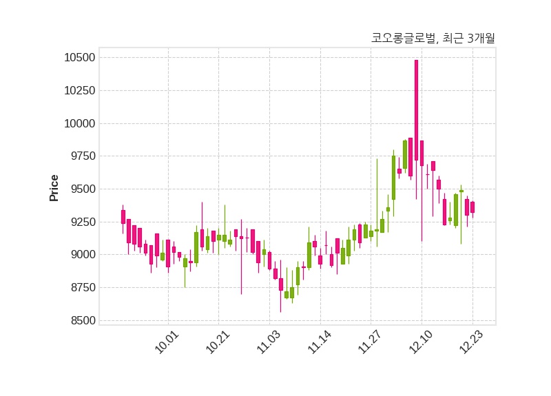 한편, 코오롱글로벌은 장 마감 이후 해당 기업공시를 발표했으며 오늘 종가가 9,320원, 거래량은 7,082주로, 직전 거래일 대비 20원(+0.22%) 상승했다.