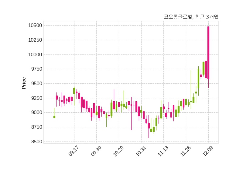 한편, 코오롱글로벌의 10시 18분 현재주가는 9,580원으로 직전 거래일 대비 20원(-0.21%) 하락이며, 거래량은 21,944주이다.