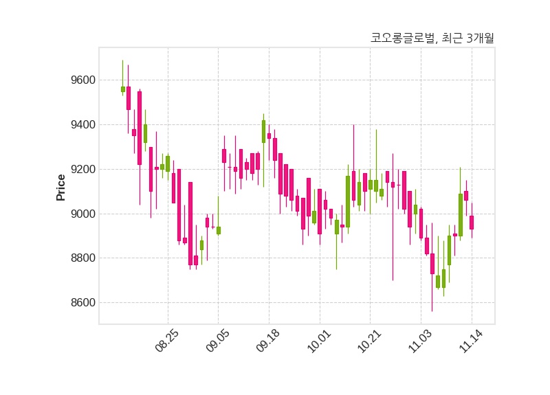 한편, 코오롱글로벌은 장 마감 이후 해당 기업공시를 발표했으며 오늘 종가가 8,930원, 거래량은 8,452주로, 직전 거래일 대비 130원(-1.43%) 하락했다.