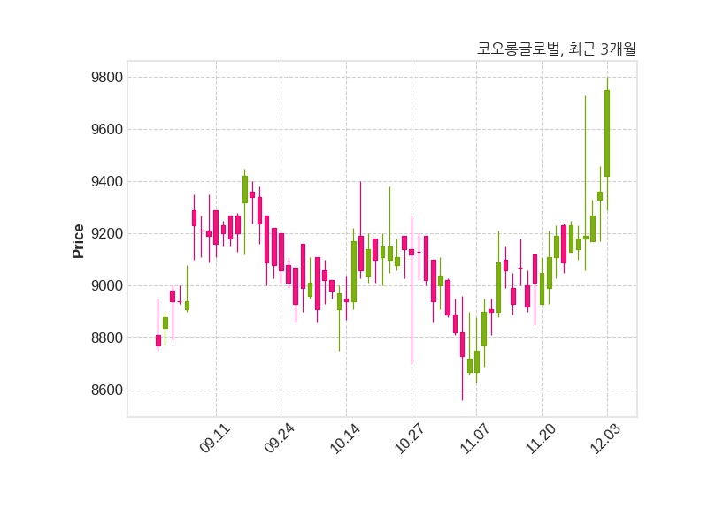 한편, 코오롱글로벌은 장 마감 이후 해당 기업공시를 발표했으며 오늘 종가가 9,750원, 거래량은 41,046주로, 직전 거래일 대비 390원(+4.17%) 상승했다.