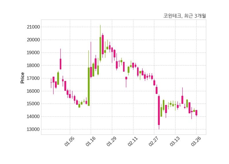 한편, 코윈테크는 장 마감 이후 해당 기업공시를 발표했으며 오늘 종가가 14,110원, 거래량은 44,237주로, 직전 거래일 대비 380원(-2.62%) 하락했다.