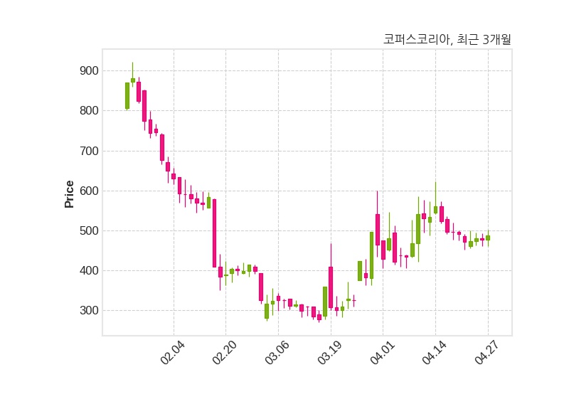 한편, 코퍼스코리아는 장 마감 이후 해당 기업공시를 발표했으며 오늘 종가가 488원, 거래량은 973,098주로, 직전 거래일 대비 12원(+2.52%) 상승했다.