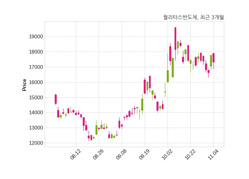 한편, 퀄리타스반도체의 13시 41분 현재주가는 17,320원으로 직전 거래일 대비 450원(-2.53%) 하락이며, 거래량은 204,523주이다.