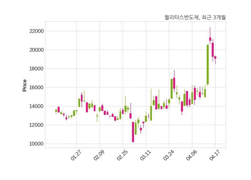 퀄리타스반도체는 특별관계자 김두호의 지분율이 30.52%에서 32.46%로 변동했다고 17일 공시했다. 한편, 퀄리타스반도체는 장 마감 이후 해당 기업공시를 발표했으며 오늘 종가가 19,100원, 거래량은 1,086,019주로, 직전 거래일 대비 210원(-1.09%) 하락했다.