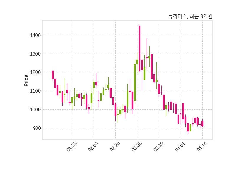 한편, 큐라티스는 장 마감 이후 해당 기업공시를 발표했으며 오늘 종가가 912원, 거래량은 225,014주로, 직전 거래일 대비 7원(-0.76%) 하락했다.