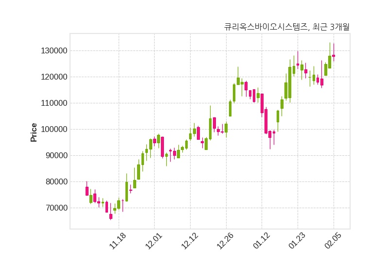 한편, 큐리옥스바이오시스템즈는 장 마감 이후 해당 기업공시를 발표했으며 오늘 종가가 127,700원, 거래량은 73,020주로, 직전 거래일 대비 100원(-0.08%) 하락했다.