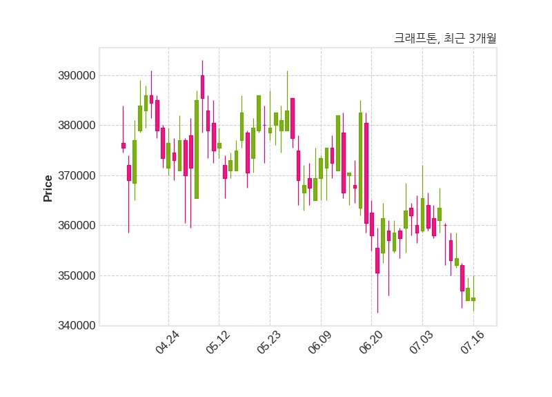 한편, 크래프톤은 장 마감 이후 해당 기업공시를 발표했으며 오늘 종가가 345,500원, 거래량은 114,294주로, 직전 거래일 대비 2,000원(-0.58%) 하락했다.