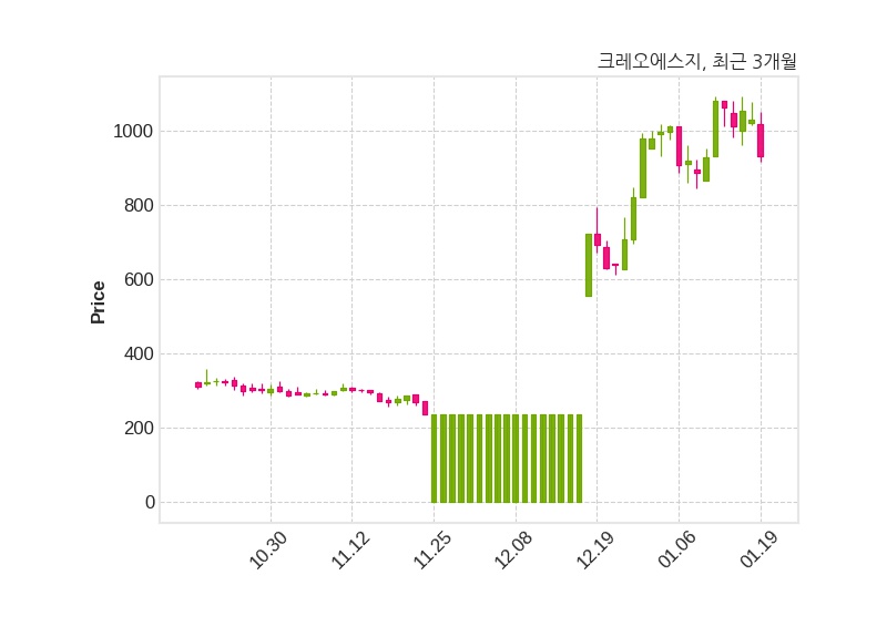 한편, 크레오에스지는 장 마감 이후 해당 기업공시를 발표했으며 오늘 종가가 930원, 거래량은 1,320,134주로, 직전 거래일 대비 97원(-9.44%) 하락했다.