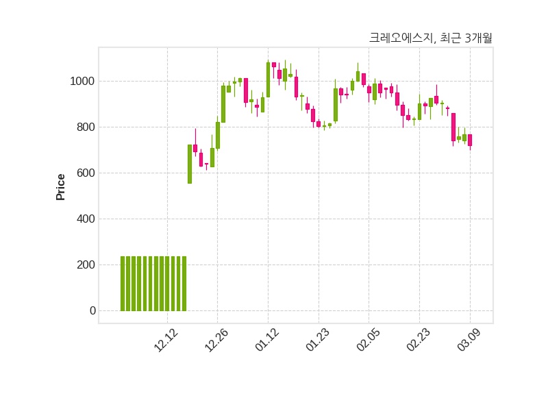 한편, 크레오에스지는 장 마감 이후 해당 기업공시를 발표했으며 오늘 종가가 719원, 거래량은 266,863주로, 직전 거래일 대비 48원(-6.26%) 하락했다.