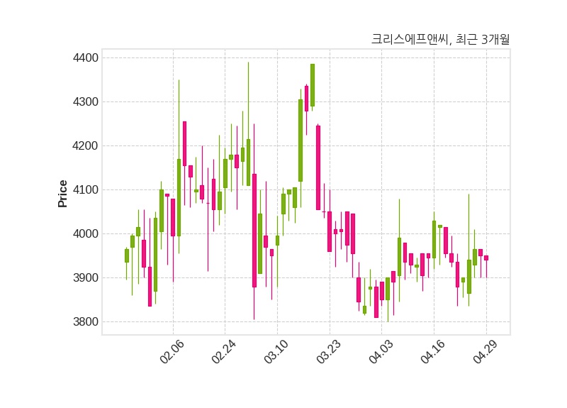 크리스에프앤씨는 특별관계자 윤정화의 지분율이 41.27%에서 40.79%로 변동했다고 29일 공시했다. 한편, 크리스에프앤씨는 장 마감 이후 해당 기업공시를 발표했으며 오늘 종가가 3,940원, 거래량은 7,989주로, 직전 거래일 대비 10원(-0.25%) 하락했다.