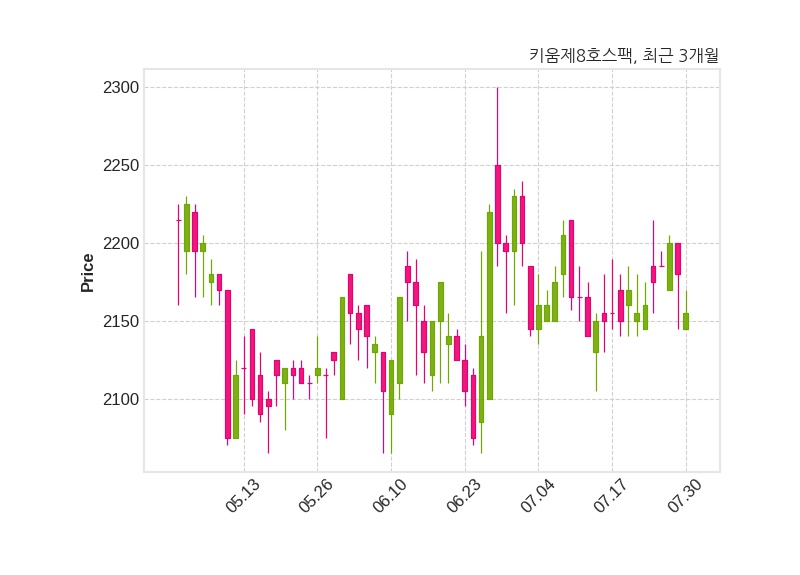 키움제8호스팩은 송현길에서 한동진으로 대표이사를 변경했다고 30일 공시했다. 변경 사유는 기업인수목적회사의 사업목적(합병) 달성 후, 기존 대표이사의 사임에 따른 신임 대표이사 선임이다. 한편, 키움제8호스팩의 15시 21분 현재주가는 2,155원으로 직전 거래일 대비 25원(-1.15%) 하락이며, 거래량은 17,029주이다.공시 전문으로 이동