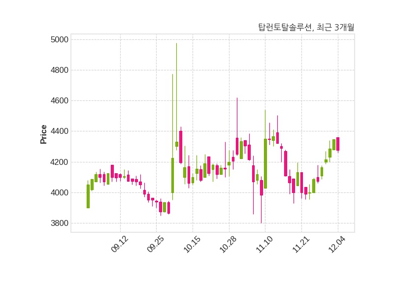 한편, 탑런토탈솔루션은 장 마감 이후 해당 기업공시를 발표했으며 오늘 종가가 4,275원, 거래량은 79,626주로, 직전 거래일 대비 70원(-1.61%) 하락했다.