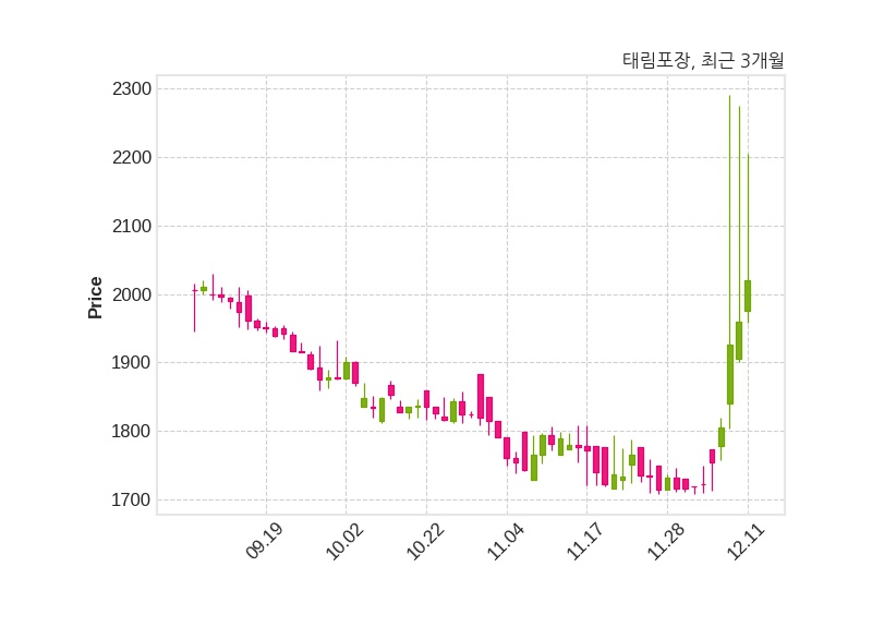 한편, 태림포장은 장 마감 이후 해당 기업공시를 발표했으며 오늘 종가가 2,020원, 거래량은 3,403,749주로, 직전 거래일 대비 60원(+3.06%) 상승했다.