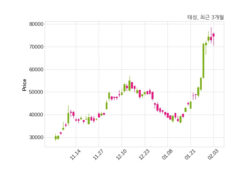 한편, 태성은 장 마감 이후 해당 기업공시를 발표했으며 오늘 종가가 74,600원, 거래량은 636,428주로, 직전 거래일 대비 1,600원(+2.19%) 상승했다.