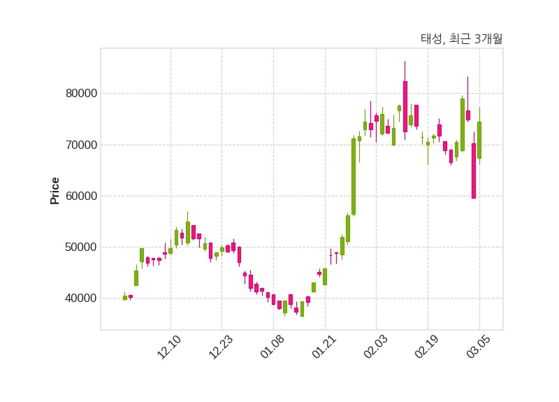 태성은 특별관계자 삼성자산운용의 지분율이 6.28%에서 5.22%로 변동했다고 05일 공시했다. 한편, 태성은 장 마감 이후 해당 기업공시를 발표했으며 오늘 종가가 74,500원, 거래량은 839,022주로, 직전 거래일 대비 14,900원(+25.0%) 상승했다.