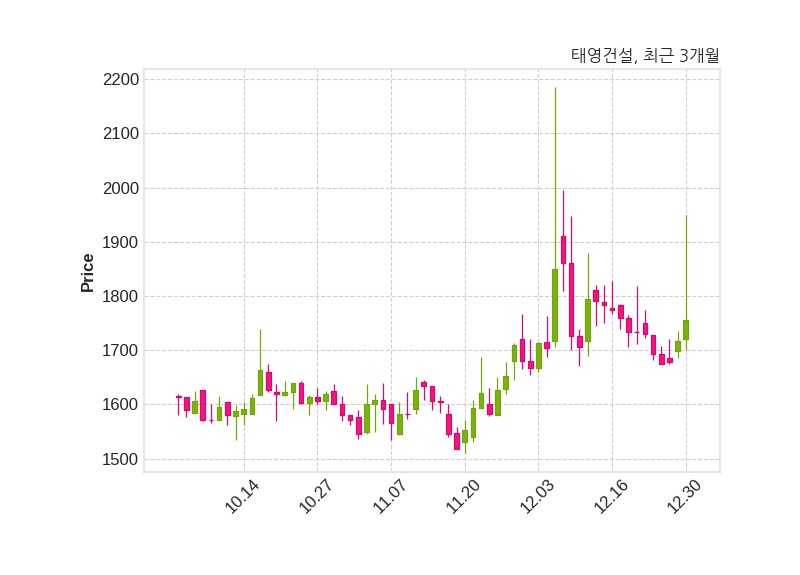 한편, 태영건설은 장 마감 이후 해당 기업공시를 발표했으며 오늘 종가가 1,756원, 거래량은 2,858,541주로, 직전 거래일 대비 39원(+2.27%) 상승했다.