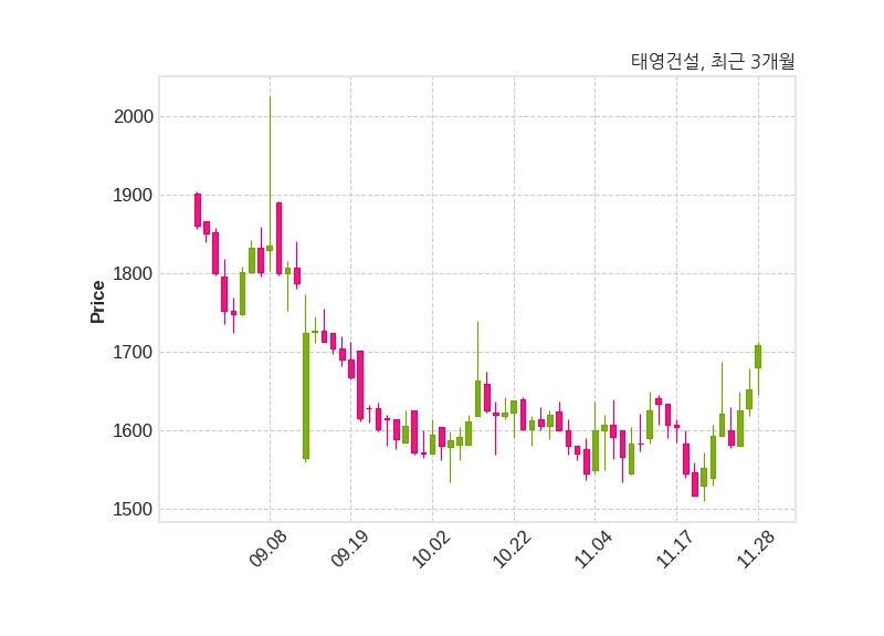한편, 태영건설은 장 마감 이후 해당 기업공시를 발표했으며 오늘 종가가 1,709원, 거래량은 441,692주로, 직전 거래일 대비 56원(+3.39%) 상승했다.