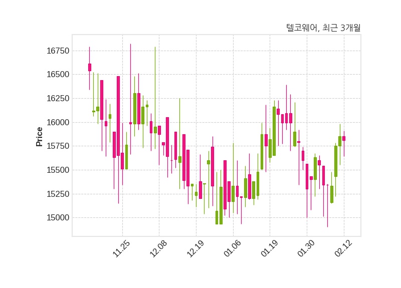 한편, 텔코웨어는 장 마감 이후 해당 기업공시를 발표했으며 오늘 종가가 15,810원, 거래량은 7,119주로, 직전 거래일 대비 40원(-0.25%) 하락했다.