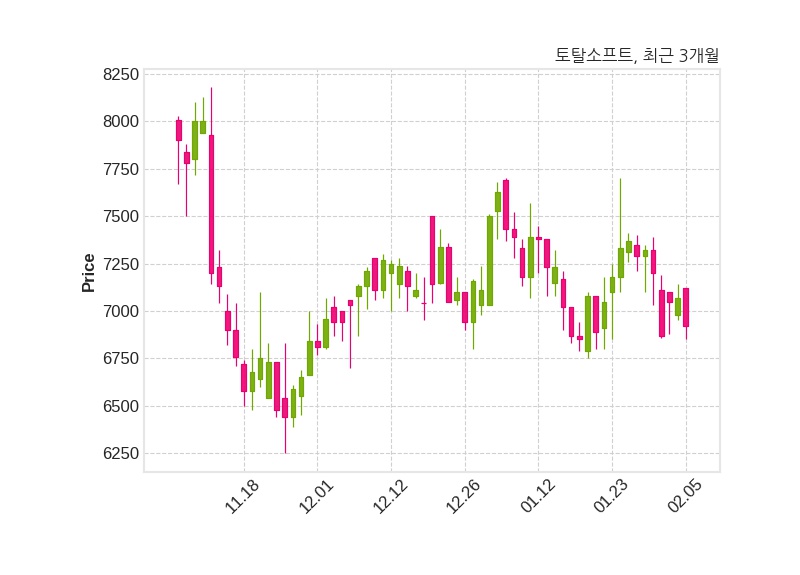 한편, 토탈소프트의 14시 09분 현재주가는 6,920원으로 직전 거래일 대비 150원(-2.12%) 하락이며, 거래량은 78,689주이다.