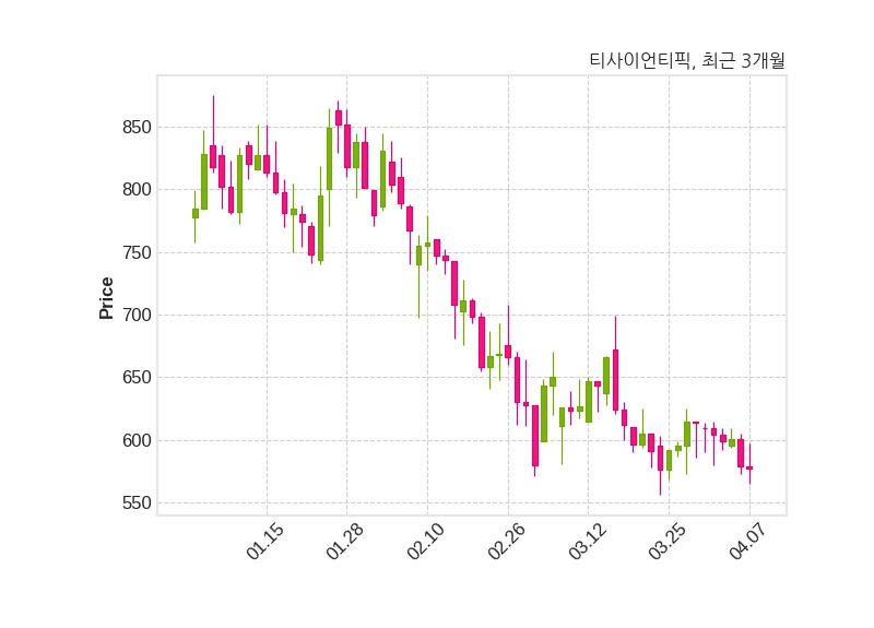 한편, 티사이언티픽은 장 마감 이후 해당 기업공시를 발표했으며 오늘 종가가 577원, 거래량은 113,110주로, 직전 거래일 대비 2원(-0.35%) 하락했다.