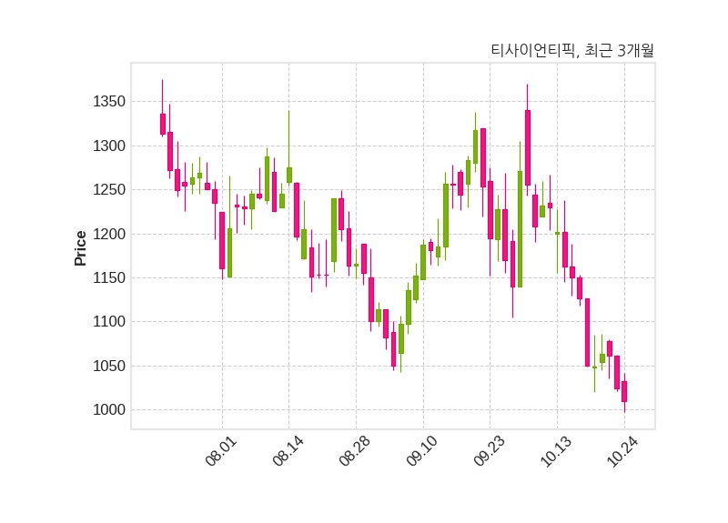 한편, 티사이언티픽은 장 마감 이후 해당 기업공시를 발표했으며 오늘 종가가 1,010원, 거래량은 444,617주로, 직전 거래일 대비 14원(-1.37%) 하락했다.
