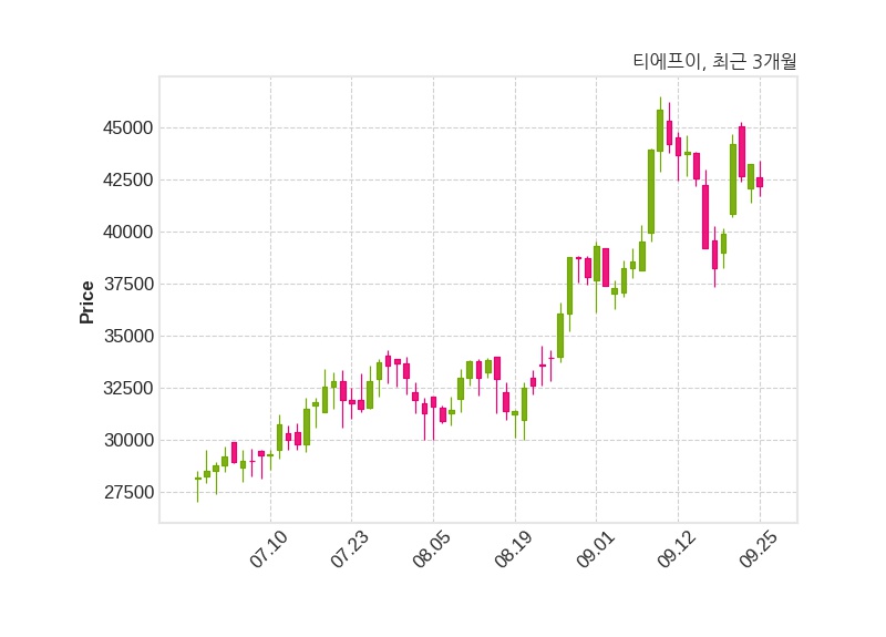 티에프이는 특별관계자 미래에셋자산운용의 지분율이 5.27%에서 4.94%로 변동했다고 25일 공시했다. 한편, 티에프이는 장 마감 이후 해당 기업공시를 발표했으며 오늘 종가가 42,200원, 거래량은 92,181주로, 직전 거래일 대비 1,050원(-2.43%) 하락했다.