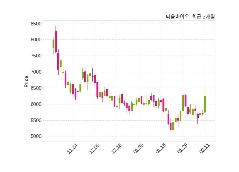 한편, 티움바이오는 장 마감 이후 해당 기업공시를 발표했으며 오늘 종가가 6,250원, 거래량은 593,011주로, 직전 거래일 대비 560원(+9.84%) 상승했다.