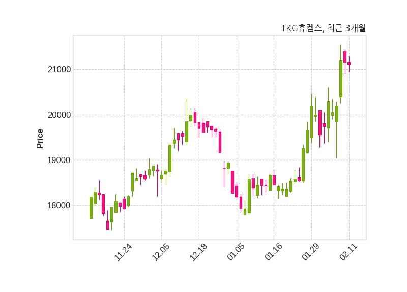한편, 티케이지휴켐스는 장 마감 이후 해당 기업공시를 발표했으며 오늘 종가가 21,100원, 거래량은 64,260주로, 직전 거래일 대비 50원(-0.24%) 하락했다.