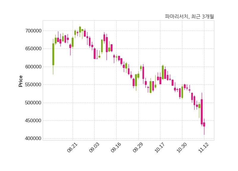 파마리서치는 특별관계자 정상수의 지분율이 41.54%에서 41.12%로 변동했다고 12일 공시했다. 한편, 파마리서치는 장 마감 이후 해당 기업공시를 발표했으며 오늘 종가가 434,500원, 거래량은 404,982주로, 직전 거래일 대비 5,500원(-1.25%) 하락했다.