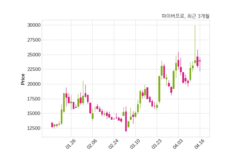 한편, 파이버프로는 장 마감 이후 해당 기업공시를 발표했으며 오늘 종가가 23,900원, 거래량은 2,217,427주로, 직전 거래일 대비 800원(+3.46%) 상승했다.