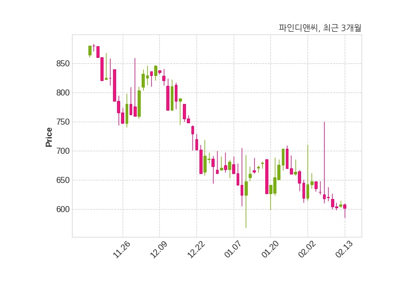 한편, 파인디앤씨는 장 마감 이후 해당 기업공시를 발표했으며 오늘 종가가 602원, 거래량은 147,210주로, 직전 거래일 대비 6원(-0.99%) 하락했다.