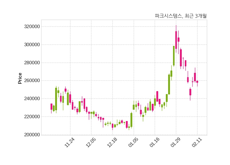 한편, 파크시스템스는 장 마감 이후 해당 기업공시를 발표했으며 오늘 종가가 258,000원, 거래량은 17,672주로, 직전 거래일 대비 1,500원(-0.58%) 하락했다.