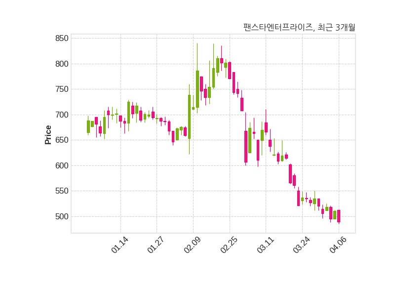 한편, 팬스타엔터프라이즈는 장 마감 이후 해당 기업공시를 발표했으며 오늘 종가가 489원, 거래량은 442,261주로, 직전 거래일 대비 21원(-4.12%) 하락했다.