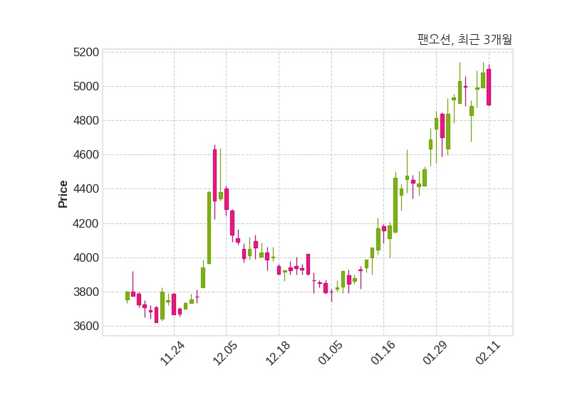 한편, 팬오션의 12시 28분 현재주가는 4,890원으로 직전 거래일 대비 190원(-3.74%) 하락이며, 거래량은 1,519,551주이다.
