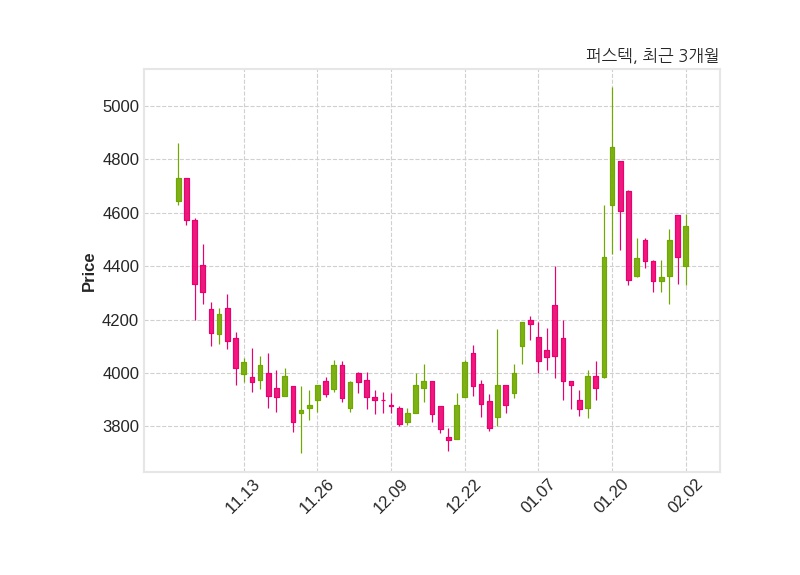 한편, 퍼스텍의 09시 54분 현재주가는 4,550원으로 직전 거래일 대비 115원(+2.59%) 상승이며, 거래량은 913,111주이다.