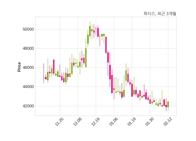 한편, 퍼시스는 장 마감 이후 해당 기업공시를 발표했으며 오늘 종가가 42,450원, 거래량은 1,544주로, 직전 거래일 대비 550원(+1.31%) 상승했다.