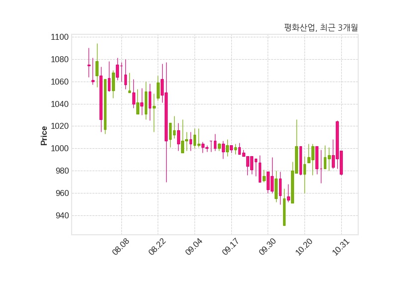 한편, 평화산업은 장 마감 이후 해당 기업공시를 발표했으며 오늘 종가가 977원, 거래량은 199,147주로, 직전 거래일 대비 14원(-1.41%) 하락했다.