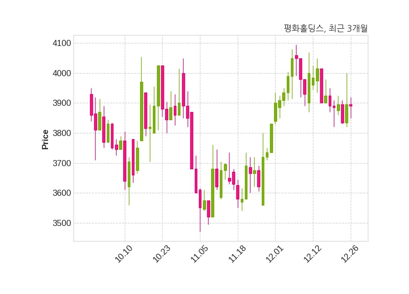 한편, 평화홀딩스는 장 마감 이후 해당 기업공시를 발표했으며 오늘 종가가 3,890원, 거래량은 21,566주로, 직전 거래일 대비 5원(-0.13%) 하락했다.