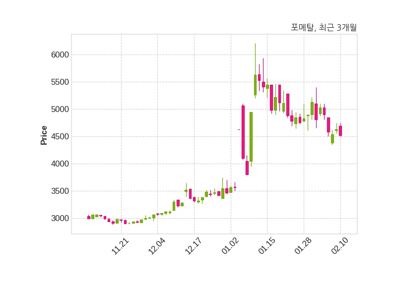 한편, 포메탈은 장 마감 이후 해당 기업공시를 발표했으며 오늘 종가가 4,520원, 거래량은 125,546주로, 직전 거래일 대비 105원(-2.27%) 하락했다.