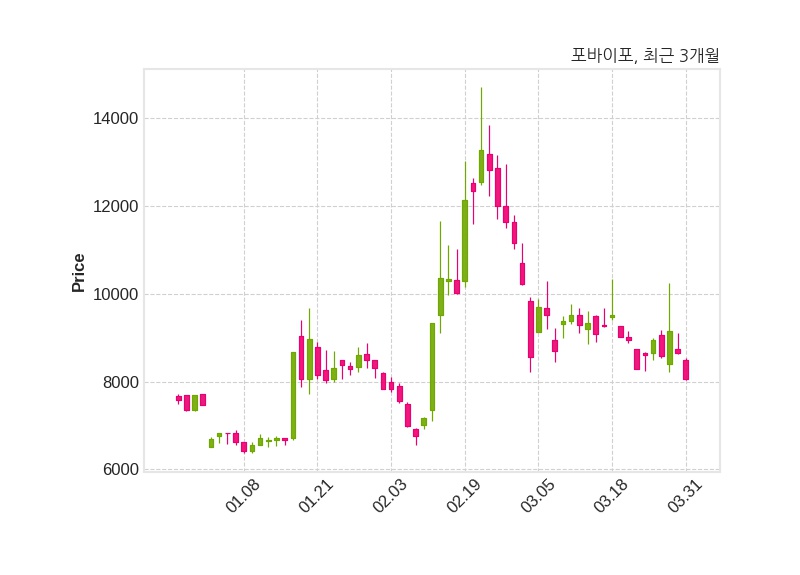 포바이포는 특별관계자 윤준호의 지분율이 21.66%에서 21.64%로 변동했다고 31일 공시했다. 한편, 포바이포는 장 마감 이후 해당 기업공시를 발표했으며 오늘 종가가 8,060원, 거래량은 252,484주로, 직전 거래일 대비 600원(-6.93%) 하락했다.